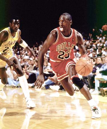 Michael Jordan wearing the white/red Air Jordan II