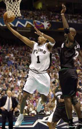 Derek Anderson wearing the player-exclusive white/grey Air Jordan III Retro in a game of the '00-'01 season for the Spurs