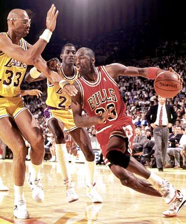 Michael Jordan wearing the white/red/black Air Jordan IV
