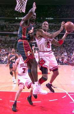 Ron Harper wearing the black/red Air Jordan XI during the '96 NBA Finals against Seattle
