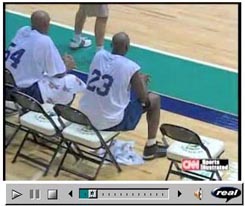 Michael Jordan wearing the black Air Jordan XVII during the Wizards' training camp in '01